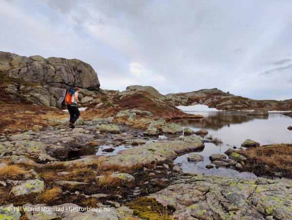 Lett å gå. Vi passerer noen småvann på turen oppover.