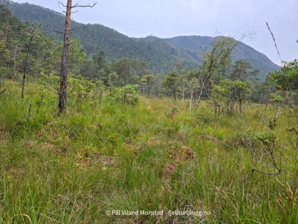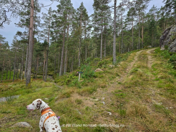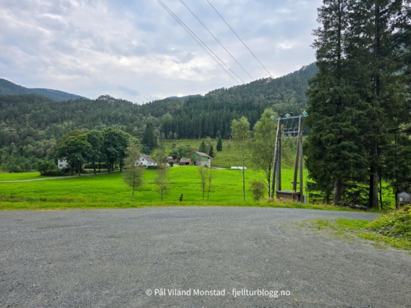 Tydelig hvor turen starter. Skilt nede ved veien, og parkeringslomme.