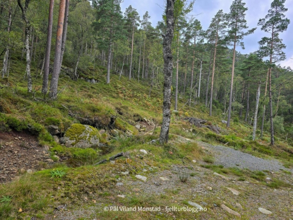 Etter ny bratt nedstigning kom jeg inn på en skogsvei som ikke var på karet.