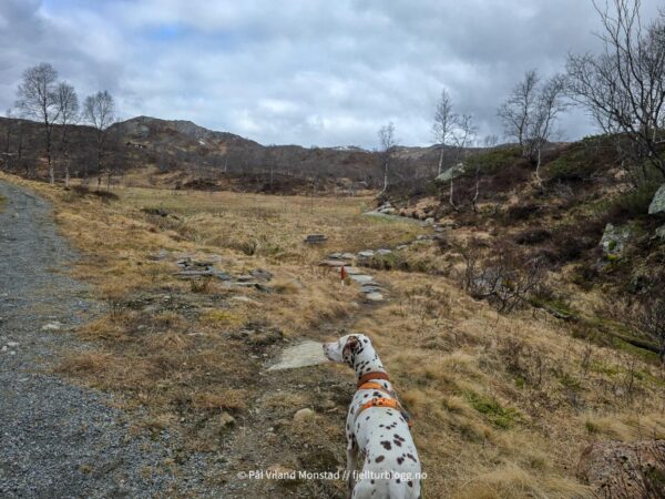 Tilbakeblikk mot parkeringsplassen på Hedlebrekk.