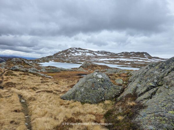 Nutavatnet har fortsatt is. Toppen ligger bak.