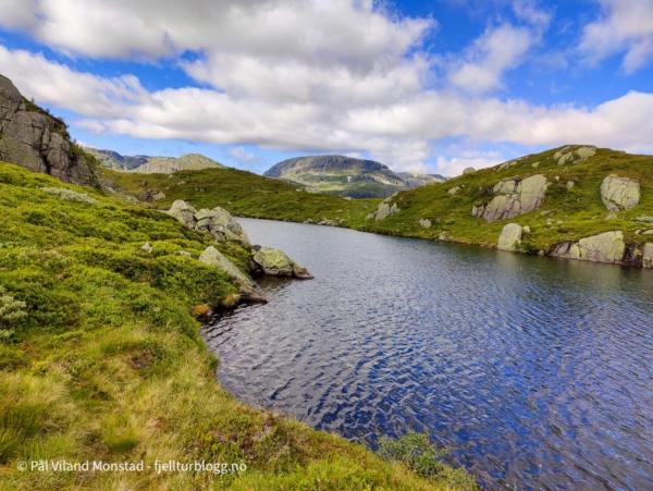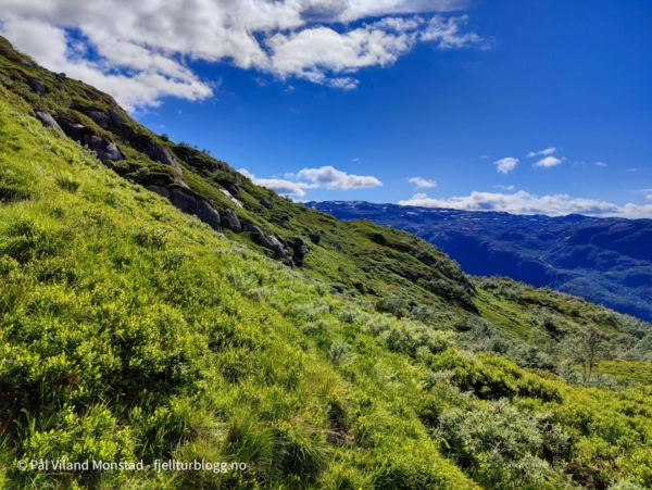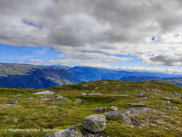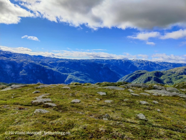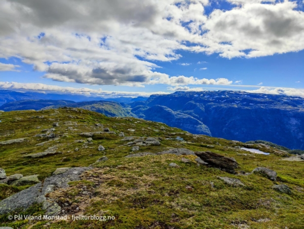 Første topp på en flerdagerstur til Suldal var Faurlinuten. Jeg kjørte til Nesflaten, og derfra opp anleggsveien mot Finnabuvatnet. En fin grusvei som gjør at man enkelt kommer langt til fjells.