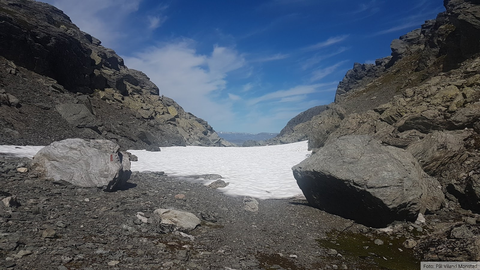 Kyrkjesteinskaret. Her møter vi snøen.