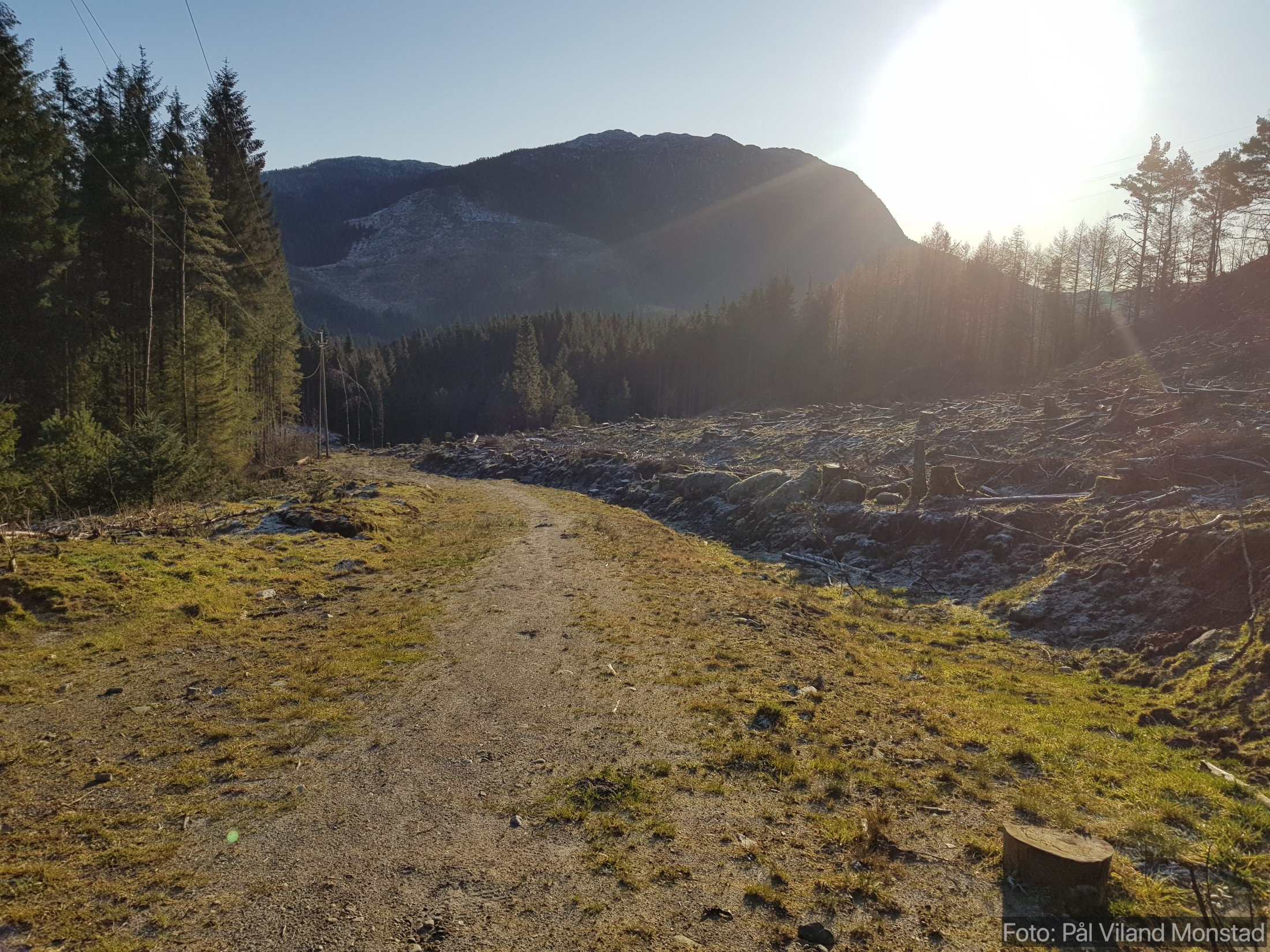 Grei vei i starten. Målet er toppen i bakgrunnen; Fuglen.