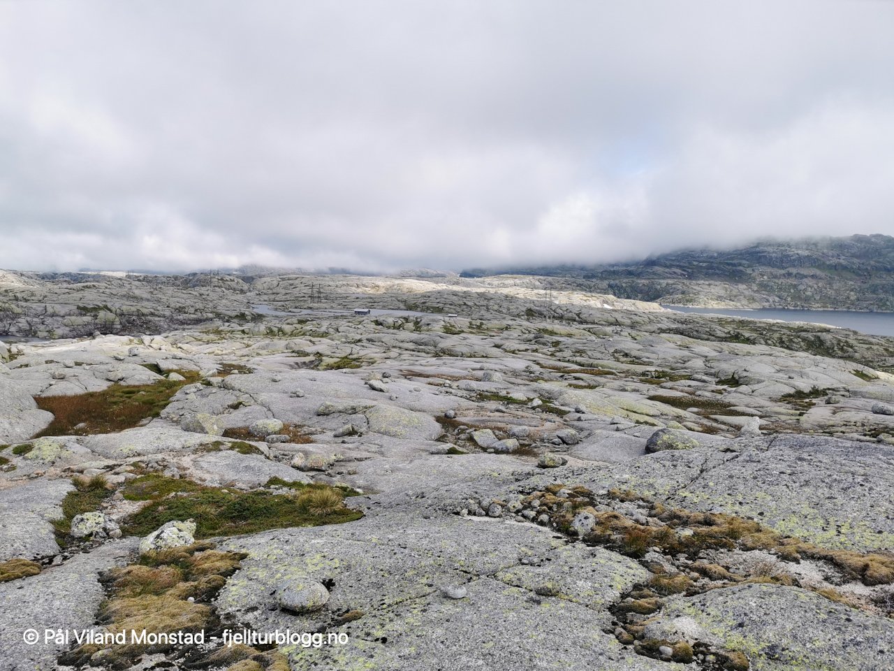 Utsikt tilbake mot Hawaii-hytta, og Stora Blåfjell i skylaget.