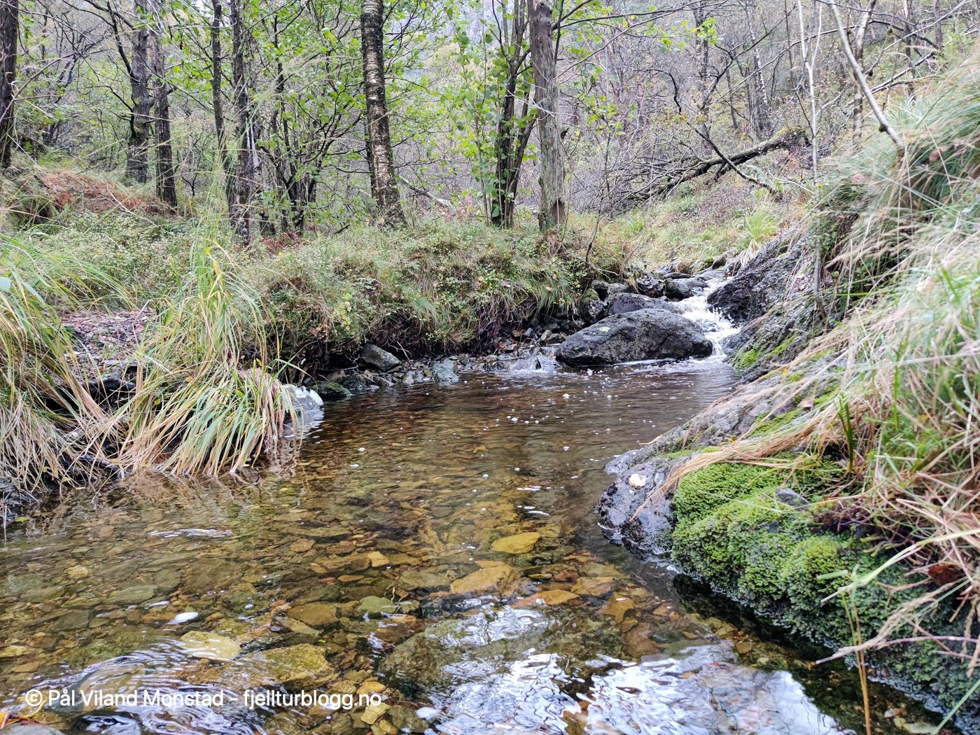 Mye nedbør siste tiden gir vann i bekker og i terrenget.