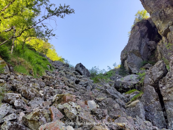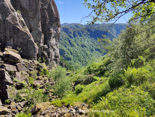Turen oppover lia i retning Liastølen var av det bratte slaget. Hvis dette er den normale veien til stølen må det ha vært et slit, både for folk og buskap. Etter mye stigning flatet det ut, før stien gikk bratt ned, via ei berghylle, i Vargshidalen, og opp ei god steinur på motsatt side.