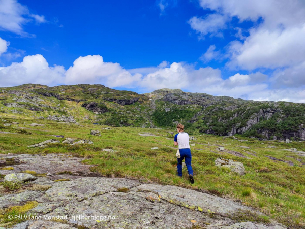 Litt høydemeter, og så ganske flatt innover mot hytta.