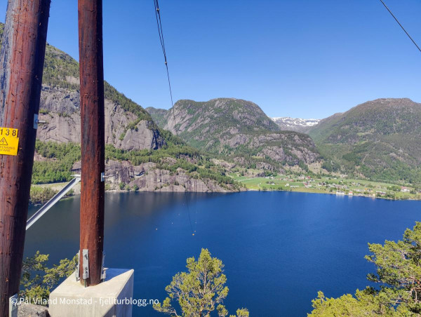 Øya, 230 moh. Utsikt over Suldalsvatnet mot Bråtveit.