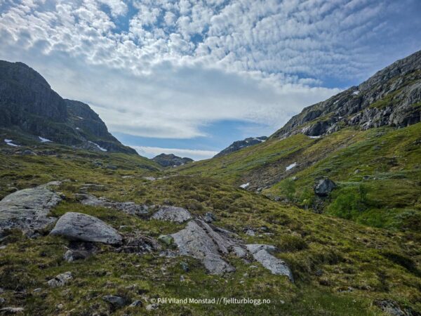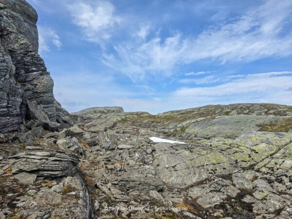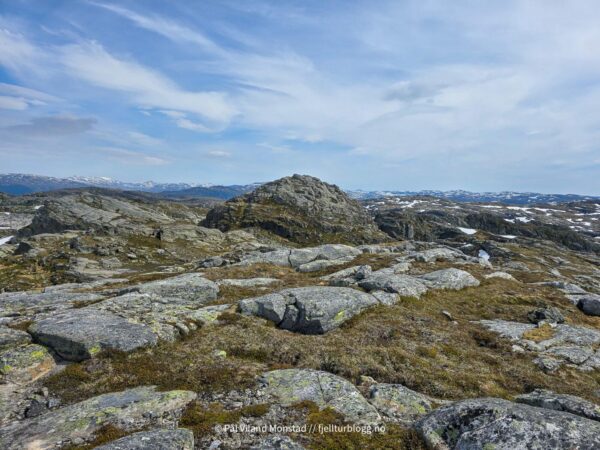 Høyeste punkt er markert med noen steiner oppå ryggen her.